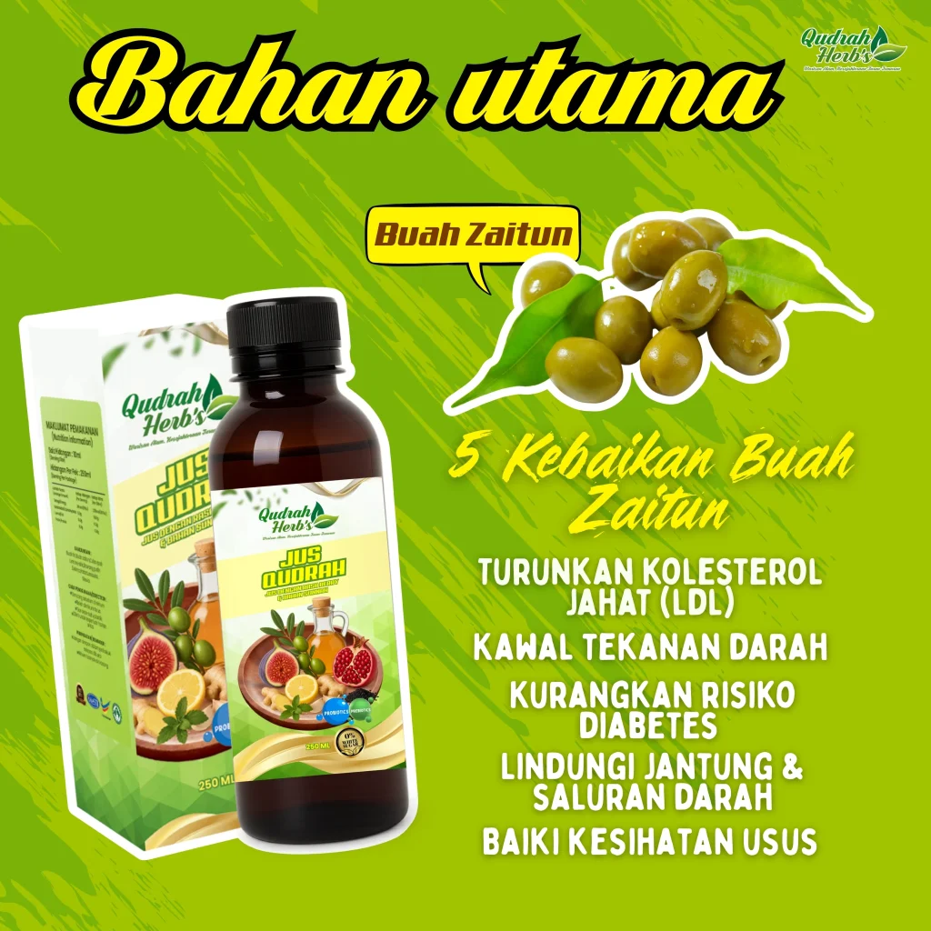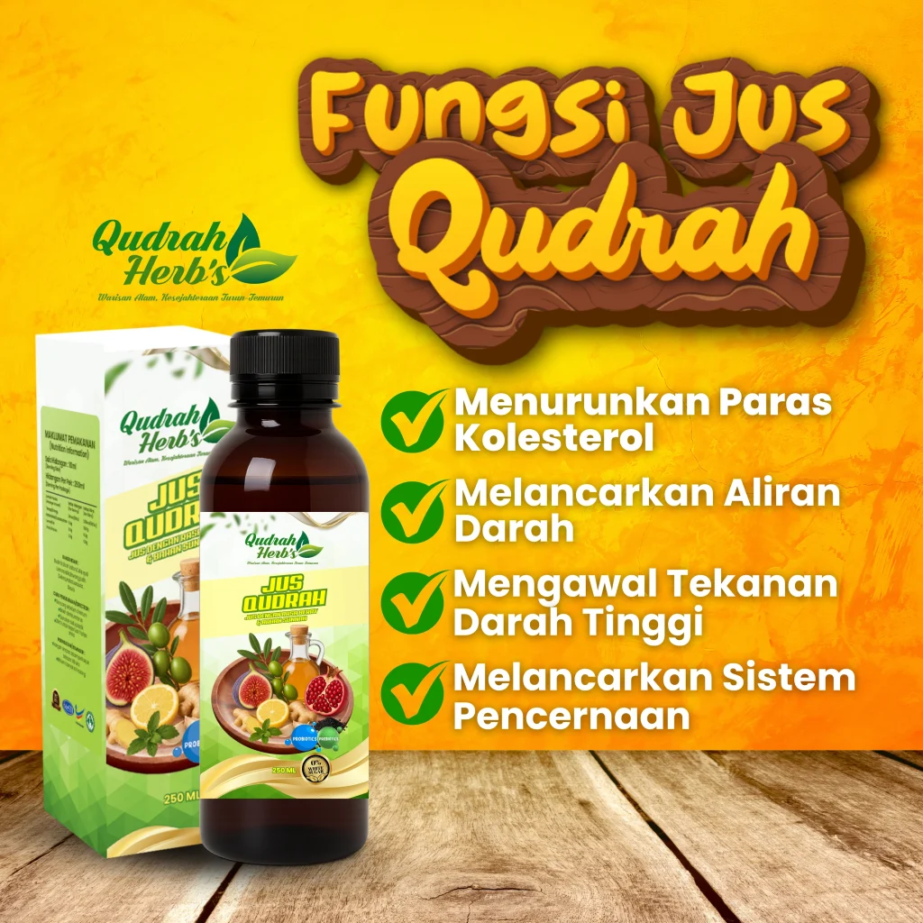 Diformulasi dengan bahan sunnah dan kajian ahli sains bertauliah. Dengan Jus Qudrah, terbukti mampu mengawal masalah kolesterol, darah tinggi dan kencing manis.