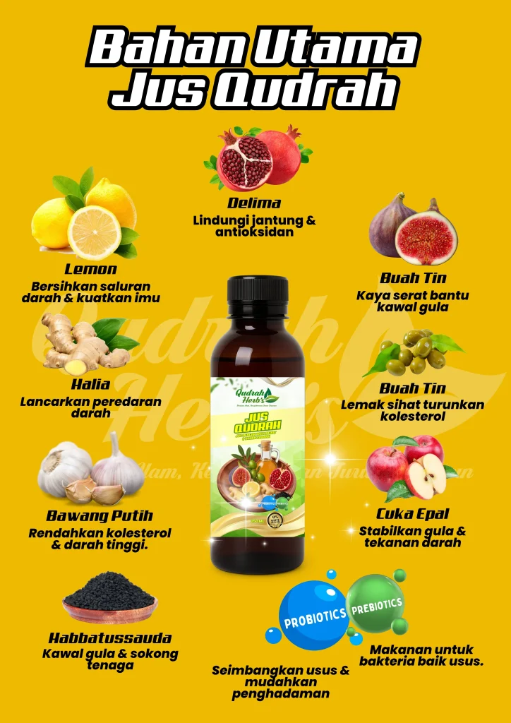 Semua ni digabung dalam Jus Qudrah — ikhtiar mudah untuk anda yang nak amalkan gaya hidup sihat berpandukan sunnah.