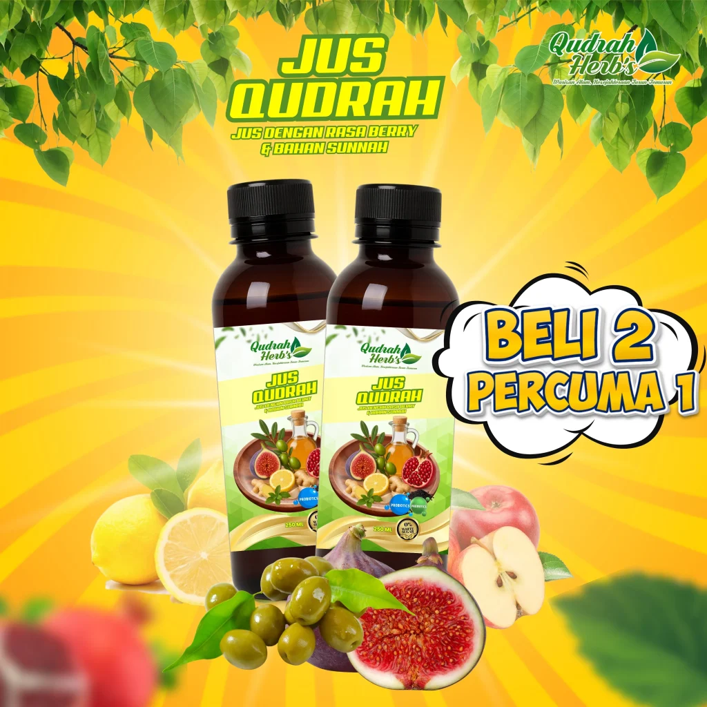 Semua khasiat ni kami gabungkan dalam Jus Qudrah, dengan rasa berry yang sedap & menyegarkan. Senang diamalkan, seronok diminum.
