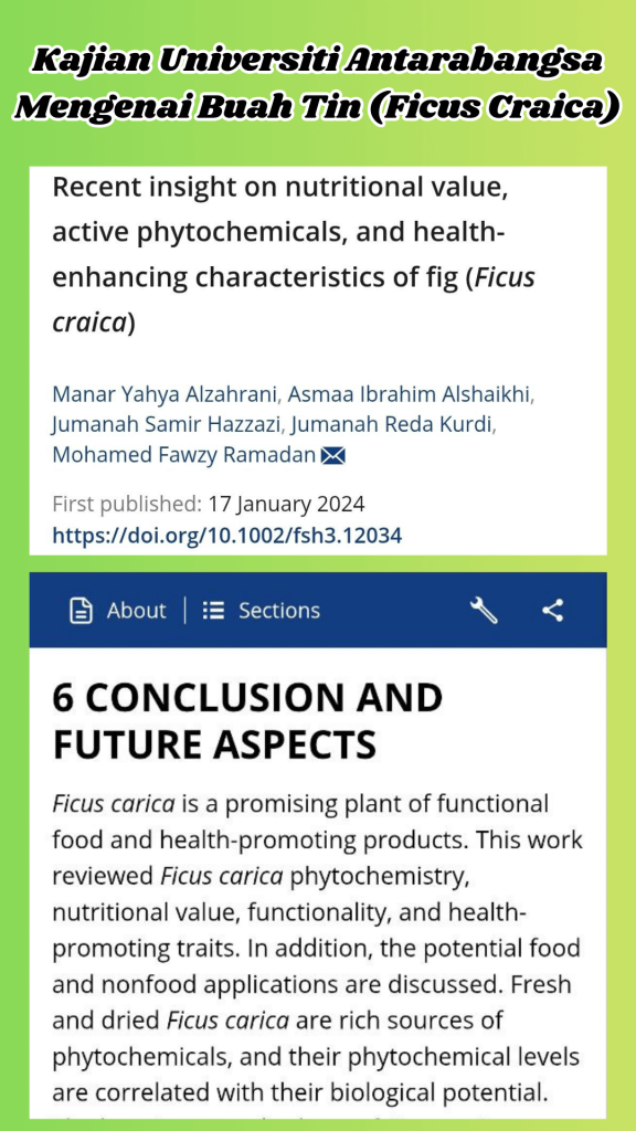 Allah SWT sebut dalam Al-Quran tentang Buah Tin dan Buah Zaitun, keduanya terkenal dengan khasiat untuk sistem pencernaan, kawal kolesterol dan baik untuk kulit.
